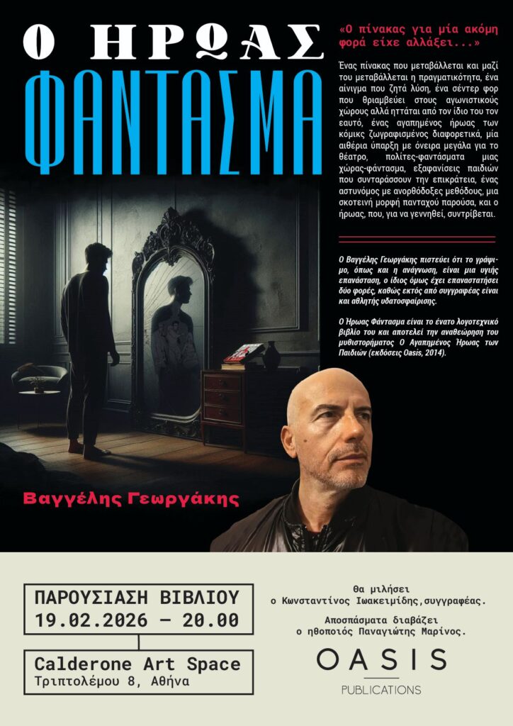 ΠΟΛΙΤΙΣΜΟΣΡΟΗ ΕΙΔΗΣΕΩΝΠαρουσίαση του βιβλίου “Ο Ήρωας Φάντασμα” by ΑΙΘΟΥΣΑ ΣΥΝΤΑΞΗΣ12/02/202612/02/2026029 Share0 Παρουσίαση του βιβλίου “Ο Ήρωας Φάντασμα” του συγγραφέα και πολίστα Βαγγέλη ΓεωργάκηΠέμπτη 19 Φεβρουαρίου στο Calderone Art Space